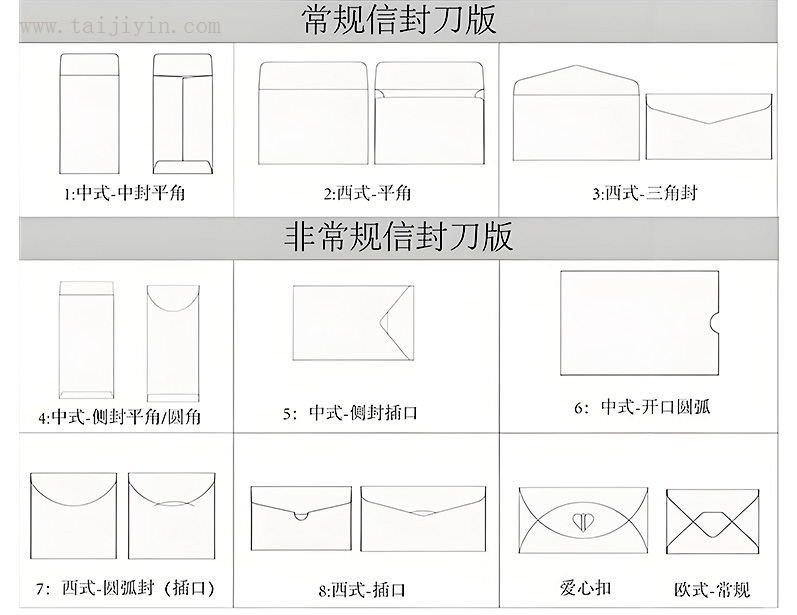 1、中式平角信封 2、西式平角信封 3、西式三角信封